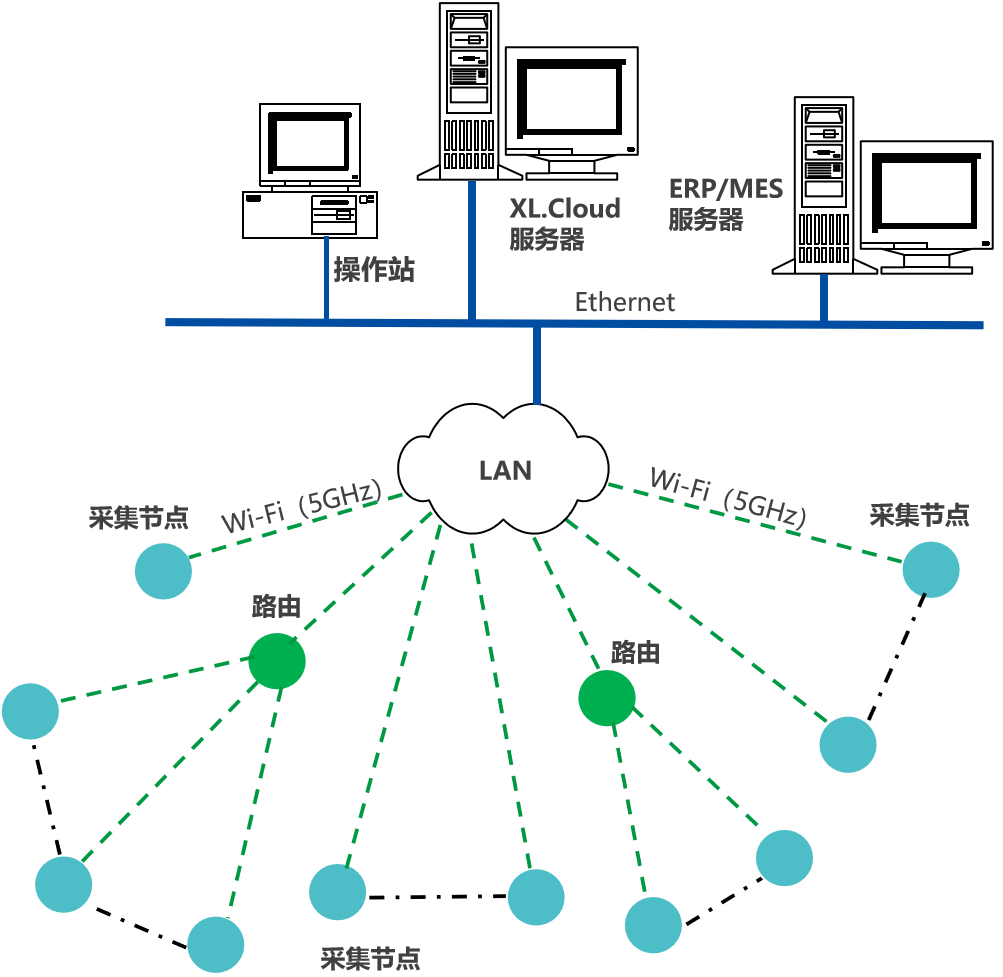 用戶(hù)可選第三方生產(chǎn)管控平臺(tái),直接從XL90網(wǎng)關(guān),或采集節(jié)點(diǎn)獲取數(shù)據(jù)