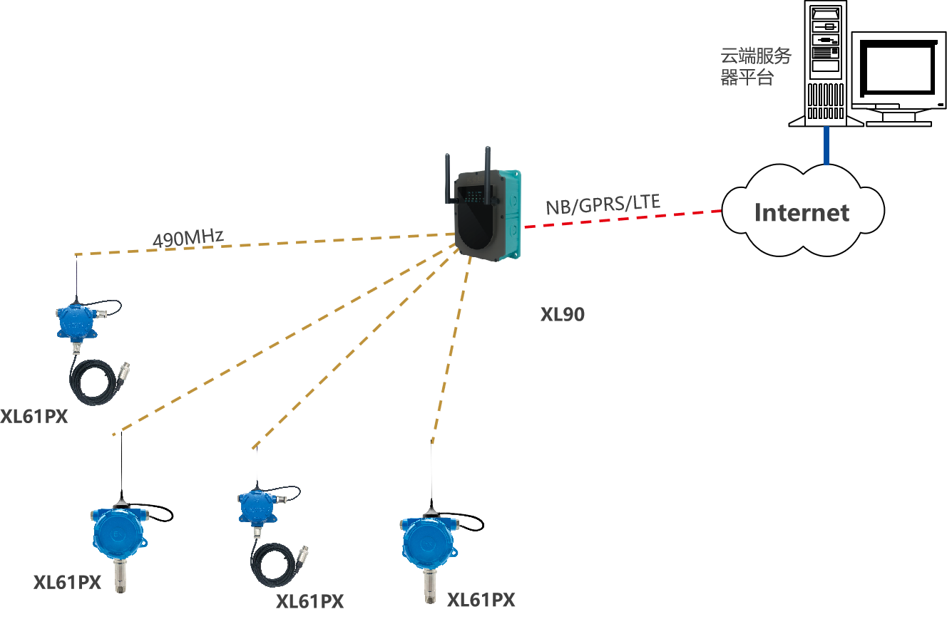 XL90,將數(shù)據(jù)上傳給企業(yè)內(nèi)部的多個(gè)系統(tǒng)軟件平臺(tái);通過(guò)LTE(4g)/NB/GPRS將數(shù)據(jù)上傳至云服務(wù)器