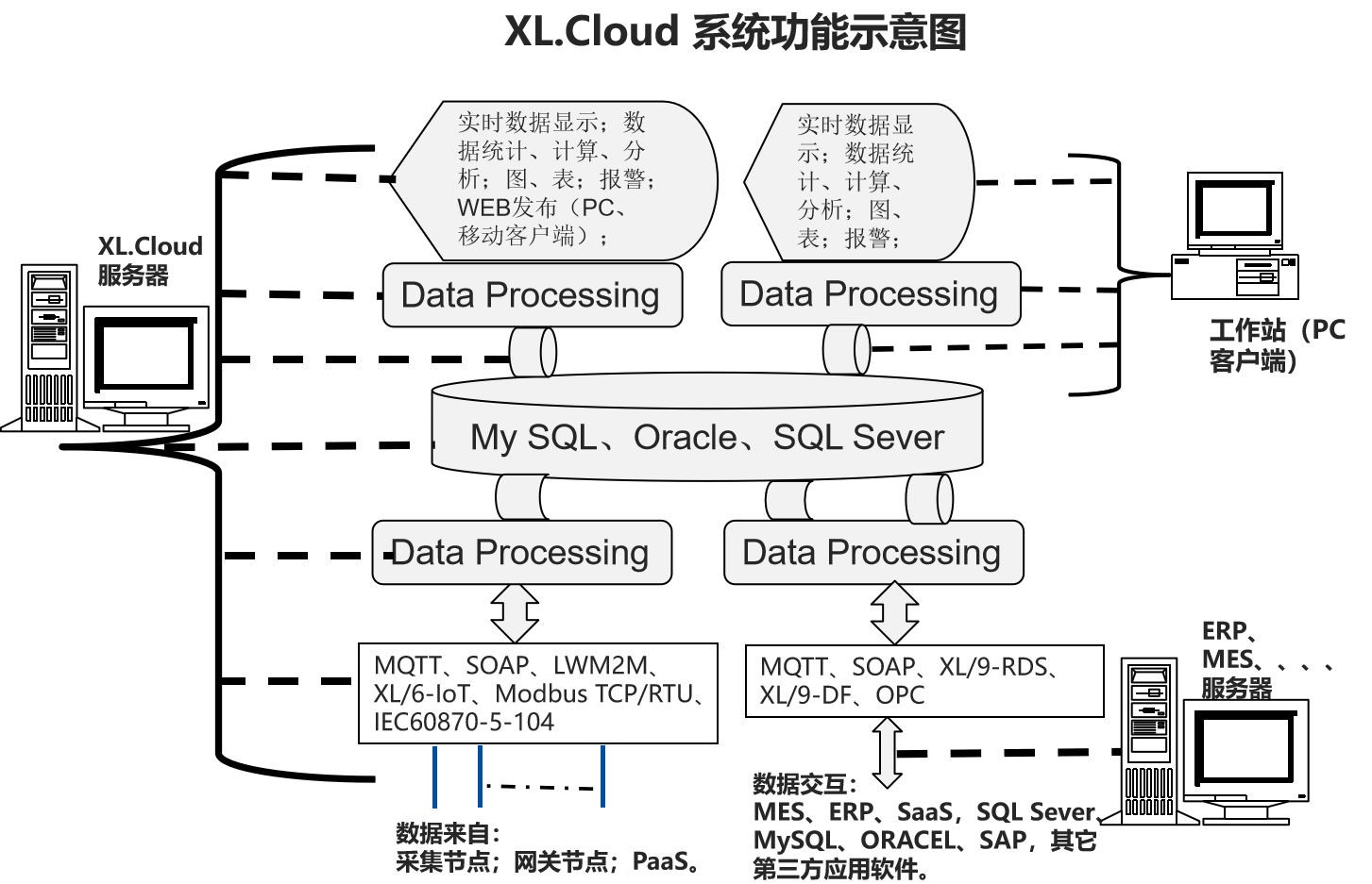 支持MQTT、LWM2M、SOAP,XL/6-IoT、XL/9-DB、XL/9-RDS,等等通信協(xié)議,并可和第三方數(shù)據(jù)庫,Oracle、SAP等交換數(shù)據(jù)