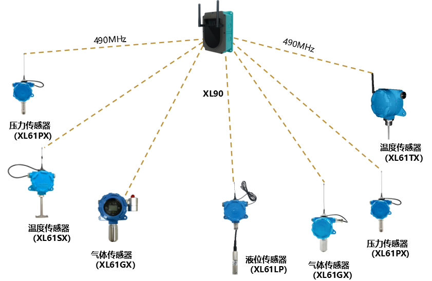 1臺XL90物聯(lián)網(wǎng)關,構建兩個獨立的LoRa通訊網(wǎng)絡,可接入64(理論上不受限制)臺智能傳感器