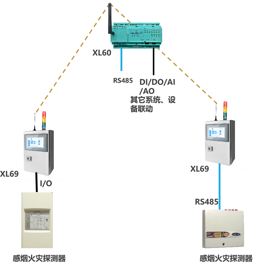 XL69智能終端,直接采集感煙探測(cè)器的信號(hào),無線上傳,遠(yuǎn)程測(cè)試、復(fù)位煙霧探測(cè)器;