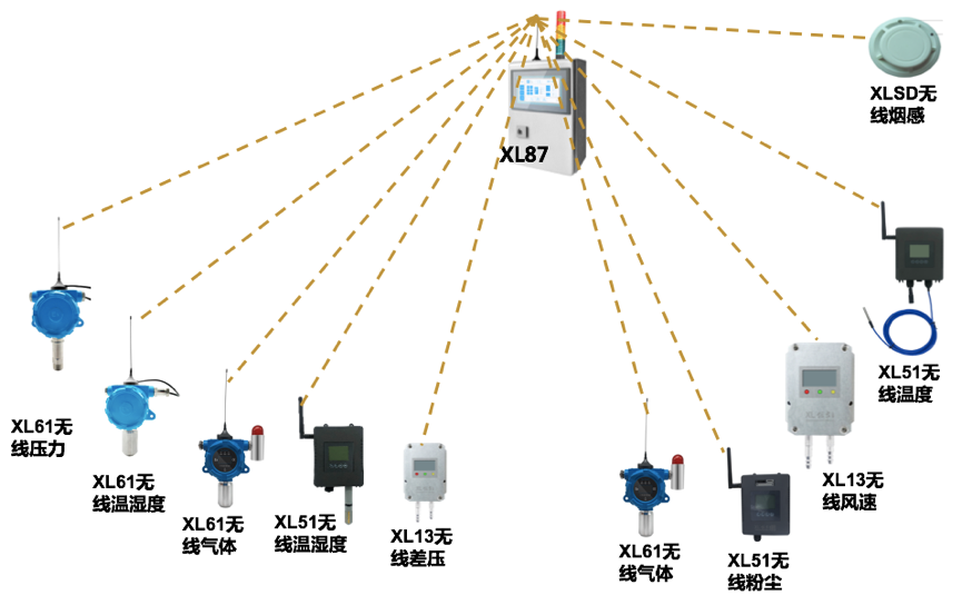 壓力、壓差、煙霧傳感器,溫度、可燃氣體、有毒有害氣體、粉塵、風(fēng)速、溫濕度、壓縮空氣含水量,等參數(shù),都配置無線傳感器進行采集;
