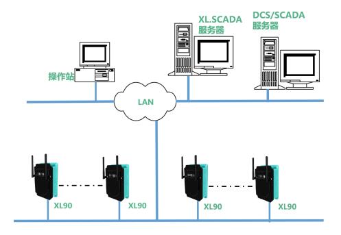 平臺(tái)通信網(wǎng)絡(luò),由XL90物聯(lián)網(wǎng)關(guān),企業(yè)局域網(wǎng),和監(jiān)控服務(wù)器構(gòu)成。