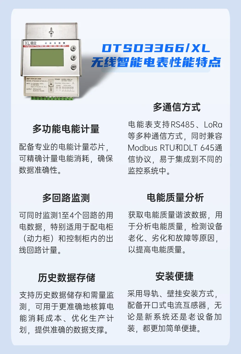 DTSD3366D/XL系列三相電子式電能表,通過LoRa無線傳輸電流數(shù)據(jù)至XL97網(wǎng)關(guān)終端,可實現(xiàn)就地監(jiān)控;XL97網(wǎng)關(guān)終端通過Ethernet或Wi-Fi推送數(shù)據(jù)至監(jiān)控平臺,實現(xiàn)遠程監(jiān)控。