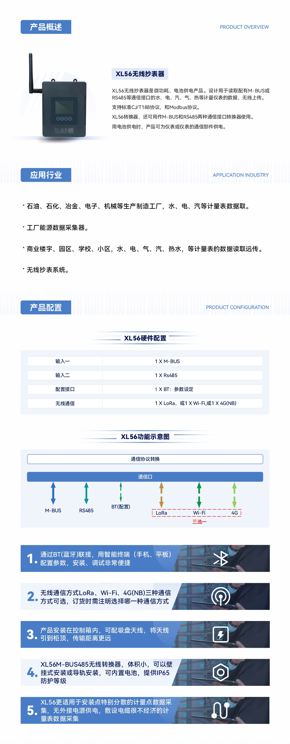 XL56無線轉換器,也可實現(xiàn)M-BUS和RS485兩個通信接口相互轉換。