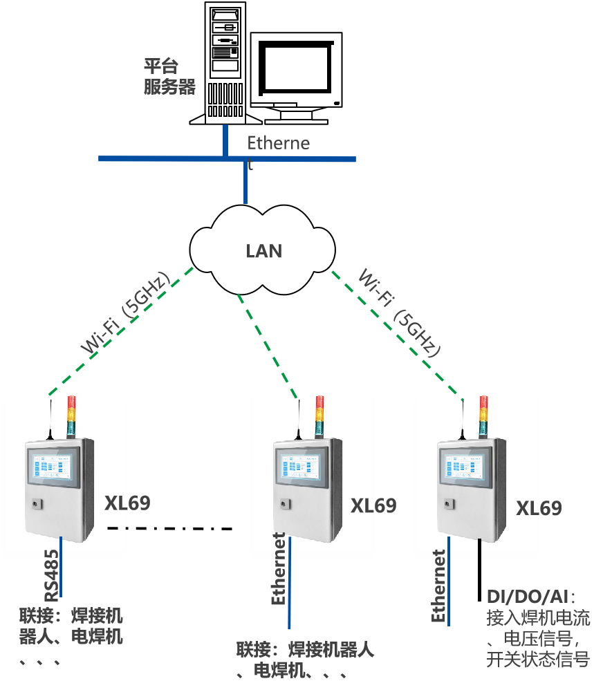 建議每32臺(tái)焊機(jī)配1臺(tái)XL90網(wǎng)關(guān);每臺(tái)焊機(jī),配1臺(tái)XL60