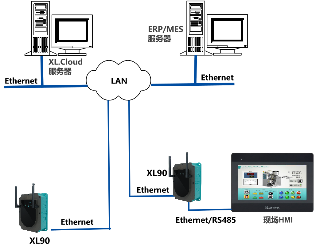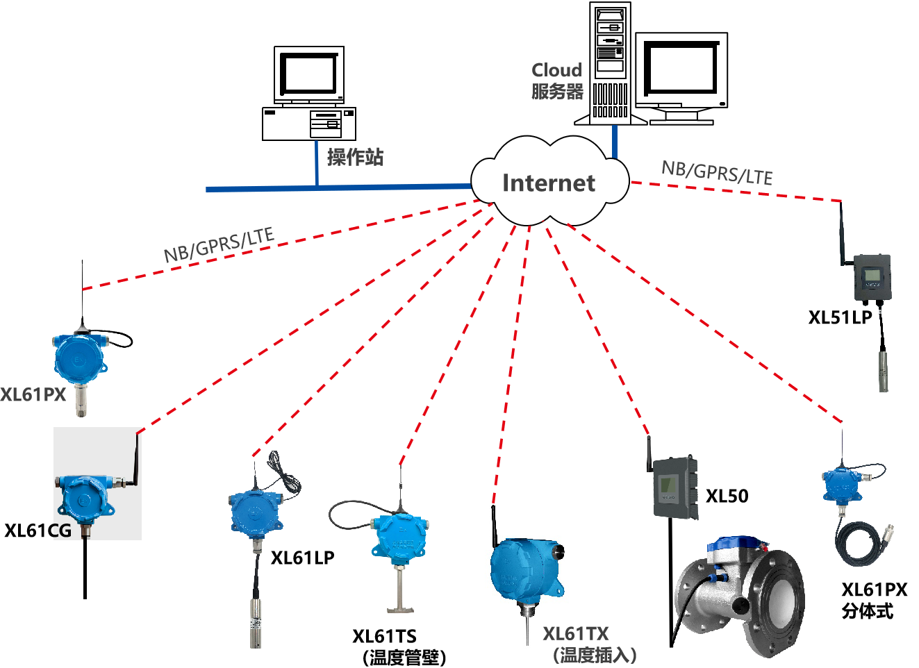 XL90,將數(shù)據(jù)上傳給企業(yè)內(nèi)部的多個系統(tǒng)軟件平臺;通過LTE(4g)/NB/GPRS將數(shù)據(jù)上傳至云服務(wù)器