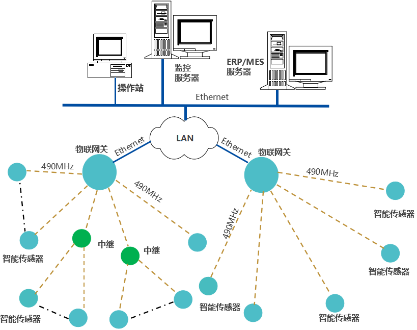 物聯(lián)網(wǎng)關通過無線方式,獲取智能傳感器的數(shù)據(jù),通過局域網(wǎng),將數(shù)據(jù)推送至監(jiān)控服務器