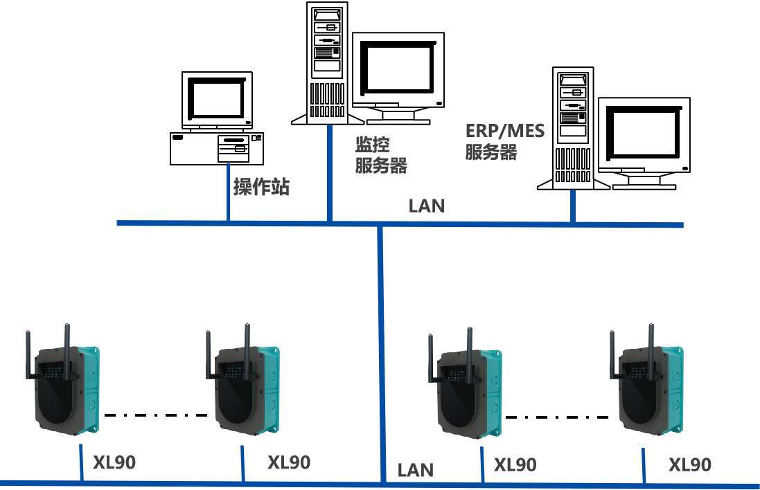 XL90將數(shù)據(jù)轉(zhuǎn)發(fā)給現(xiàn)場HMI;將數(shù)據(jù)上傳給企業(yè)內(nèi)部的多個系統(tǒng)軟件平臺;通過LTE(4g)/NB/GPRS將數(shù)據(jù)上傳至云服務器