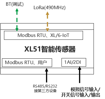 XL51智能傳感器,設計有模擬信號、開關信號及RS485接口,可接入多種類型、功能的傳感器探頭