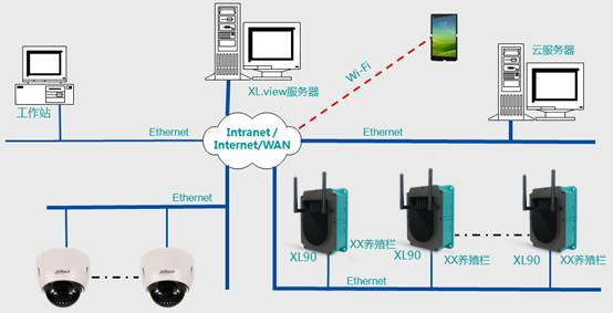 智慧養(yǎng)殖環(huán)境監(jiān)控系統(tǒng)基于傳統(tǒng)服務(wù)器或云服務(wù)器平臺和XL.SN智能傳感網(wǎng)絡(luò)技術(shù)(Lora、433M、4G、NB-IOT等),采用物聯(lián)網(wǎng)關(guān)、智能環(huán)境監(jiān)測終端、無線采集裝置、智能傳感器等,實(shí)現(xiàn)對空氣溫濕度、光照度、CO?濃度、硫化氫、氨氣、溶氧量、PH值、水溫、銨氮等養(yǎng)殖場環(huán)境參數(shù)的實(shí)時(shí)采集、無線傳輸、監(jiān)測和控制。