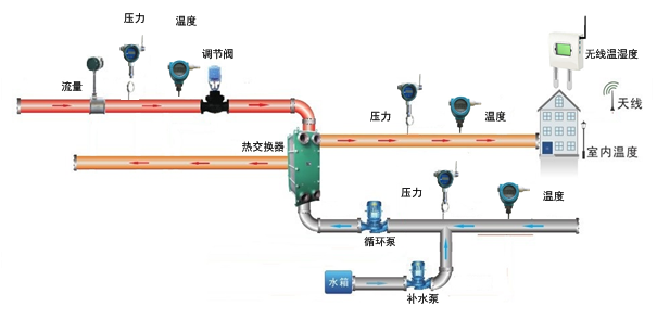 1、傳感器監(jiān)測層:主要有各種監(jiān)測傳感器組成,比如壓力、溫度、流量、地理與換熱站監(jiān)控設備組成。