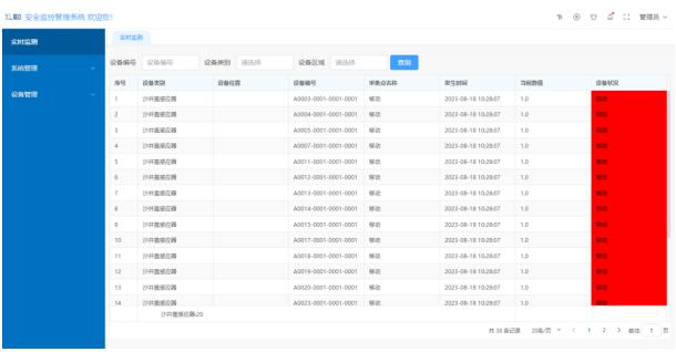 首頁實時顯示處于報警狀態(tài)的設備,設備當前狀態(tài)、位置一目了然,管理人員根據(jù)監(jiān)測數(shù)據(jù)及時作出應對處理,避免安全事故的發(fā)生。